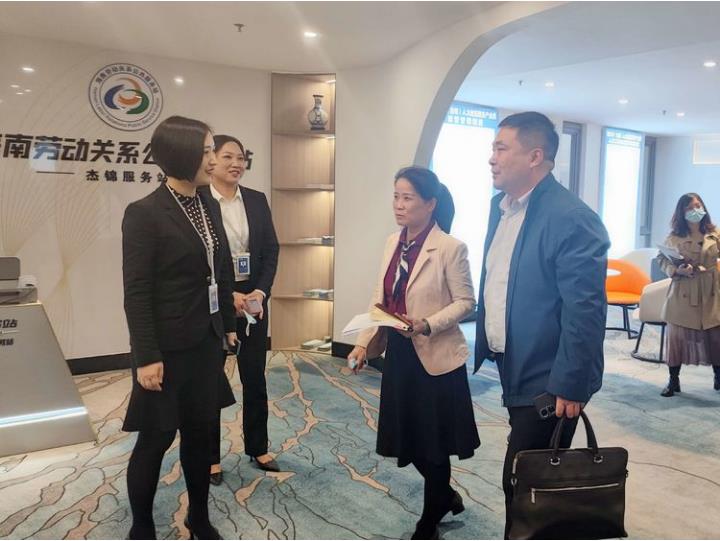 市人社局就業(yè)促進(jìn)科負(fù)責(zé)人劉剛和龍華區(qū)人社局局長(zhǎng)陳明曉攜一行人先實(shí)地考察了??冢ń苠\)人力資源服務(wù)產(chǎn)業(yè)園和??诮苠\就業(yè)驛站,了解其規(guī)模布局、功能服務(wù)等情況。期間,還與海南就業(yè)驛站——??诮苠\人才就業(yè)服務(wù)站的工作人員進(jìn)行交談,了解2月10日在園區(qū)舉辦的“春風(fēng)行動(dòng)”招聘會(huì)的具體情況以及招聘會(huì)的成效。