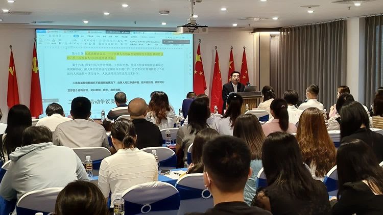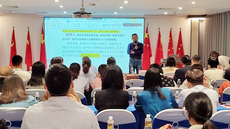海南法立信律師事務(wù)所合伙人朱星星律師進(jìn)行勞動(dòng)法律法規(guī)宣講和企業(yè)用工法律風(fēng)險(xiǎn)防范講解。從常見勞動(dòng)關(guān)系風(fēng)險(xiǎn)隱患及防控、勞動(dòng)糾紛調(diào)解方法及技巧、典型案例解析等方面,為廣大用人單位和勞動(dòng)者講解勞動(dòng)保障法律法規(guī)。在源頭上幫助企業(yè)化解矛盾、構(gòu)建和諧勞動(dòng)關(guān)系。