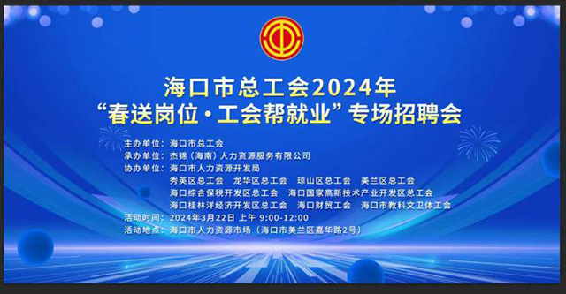 椰城三月,春意暖人。為貫徹落實黨的二十大報告提出的“促進高質(zhì)量充分就業(yè)”的目標要求和中國工會十八大關(guān)于加強工會就業(yè)創(chuàng)業(yè)服務(wù)部署的重要舉措,3月22日上午,由海口市總工會主辦的以“春送崗位·工會幫就業(yè)”為主題思想春風行動招聘會活動在??谑腥肆Y源開發(fā)局順利舉辦。