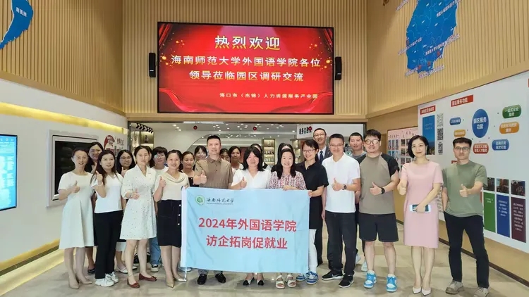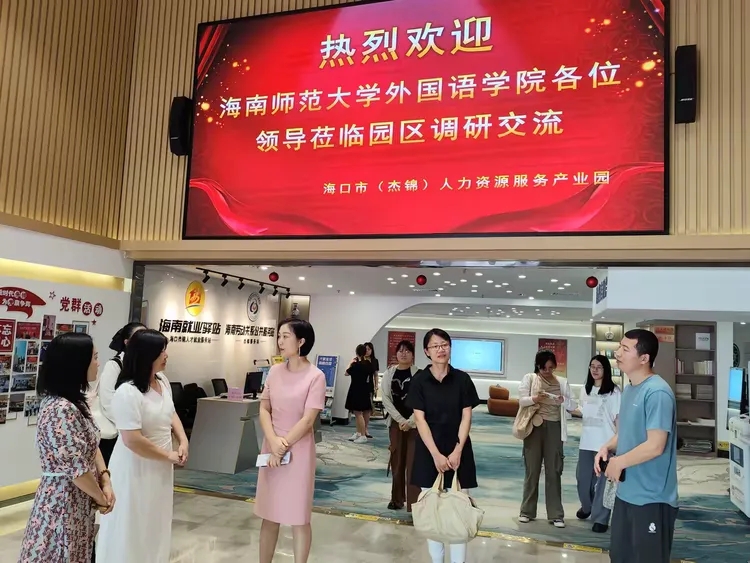 為貫徹落實(shí)“訪(fǎng)企拓崗”促就業(yè)專(zhuān)項(xiàng)行動(dòng)工作部署,尋求校企合作機(jī)會(huì),拓寬畢業(yè)生就業(yè)渠道,促進(jìn)2024年高校畢業(yè)生高質(zhì)量就業(yè),同時(shí)進(jìn)一步發(fā)展實(shí)習(xí)、就業(yè)基地,5月29日上午,海南師范大學(xué)外國(guó)語(yǔ)學(xué)院黨委副書(shū)記楊白全率隊(duì),商務(wù)英語(yǔ)系主任游艷、日語(yǔ)系主任汪宇、就業(yè)負(fù)責(zé)人鐘亨任、朱大珩一行5人,以及英語(yǔ)系應(yīng)屆畢業(yè)生7人,到??谑校ń苠\)人力資源服務(wù)產(chǎn)業(yè)園進(jìn)行調(diào)研交流。