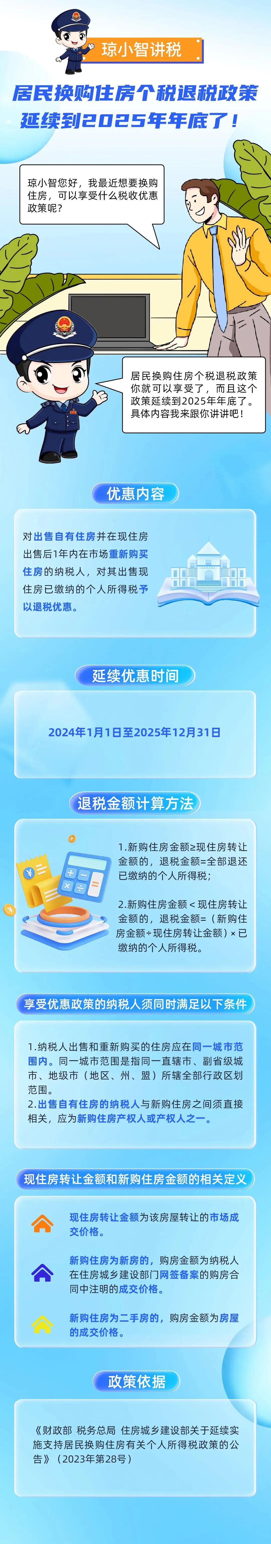 居民換購住房個稅退稅政策延續(xù)到2025年年底了!